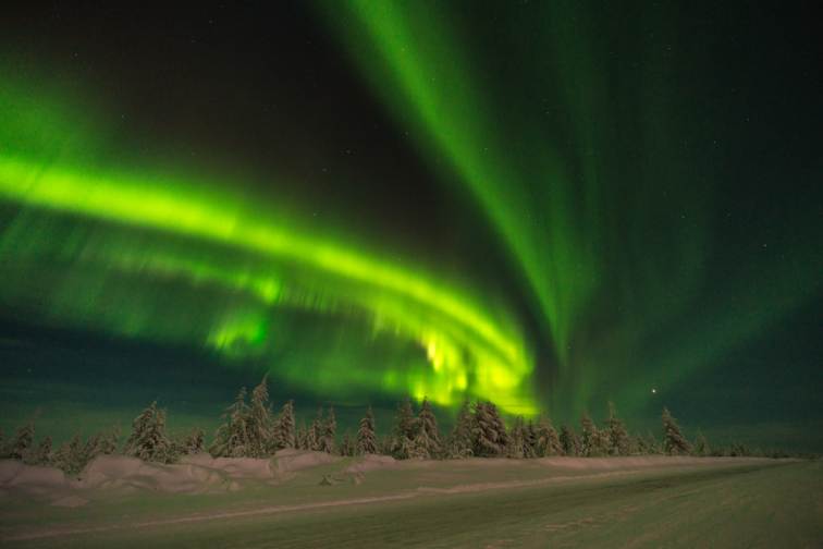 オーロラの発生条件については、はっきりと解明されていません。ただ、オーロラを地上から観賞するためには雲1つない日が最適です。そのため降雨量の少ない真冬が狙い目です。