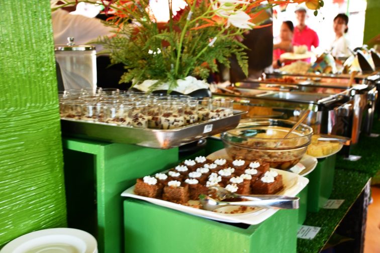 ビュッフェスタイルのランチで、料理は10種類ほど用意されています。クルーズの間はいつでも席から取りに行けますが、途中からデザートタイムに切り替わるとおかず類が食べられません。クルーズの後もアクティビティがてんこ盛りなので、ここでしっかり食べておくのが良いでしょう!