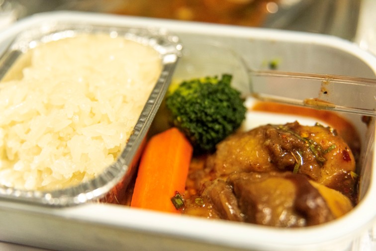 今回は、予約時に事前に機内食のリクエストをしておきました。タイ語で「カオニャオ・ガイヤーン」というタイの代表的な軽食です。カオ(ご飯)ニャオ(もちもちとした)、ガイ(鶏)ヤーン(焼く)という意味です。ローカルの人は、もち米を手でまるめて、タレにつけながら鶏肉と一緒に食べます。本場よりもちょっと辛さ控えめのガイヤーン、とても美味しかったです。