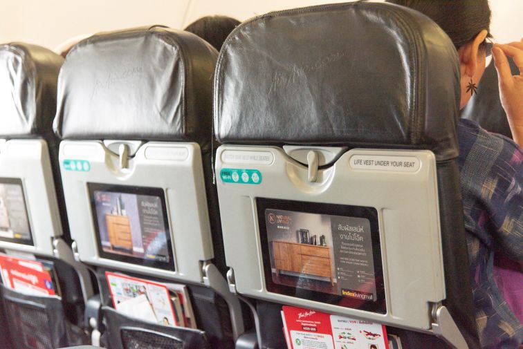 配列は3-3、他社LCCでも採用されている定番の旅客機です。チェンマイまでは約1時間45分のフライトとなります。機内への移動は、大型混載バスではなくボーディングブリッジ。比較的ストレスの少ない移動で、あまり疲れませんでした。