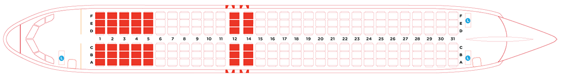機体の前方と非常口付近に「ホットシート」と呼ばれる座席があります。事前予約と追加料金が必要。前方の席との距離は約73cm、座席の幅は約40~43cm。1、12、14列目では、足元に約53cmの余裕があり、優先搭乗を利用できます。長時間のフライトをお得かつ快適に過ごしたいという方は、「ホットシート」の事前予約をオススメします。