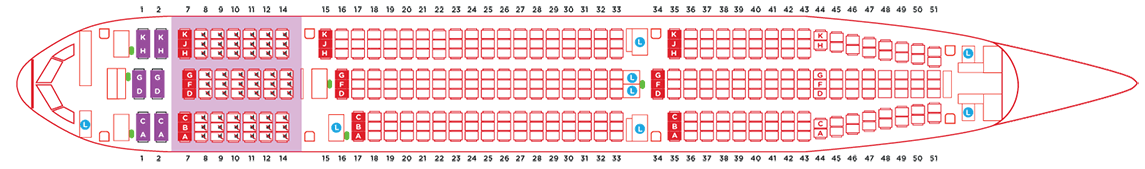 配列は3-3-3です。後部は2-3-2となっており、通路が比較的広い造りになっています。成田空港からはボーディングブリッジがあるので、雨に濡れることなくスムーズに搭乗できます。長距離路線のA330の機材には4種類の座席があります。