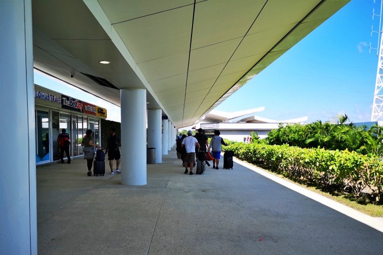 自動ドアを抜けると通路の左右には、黒看板のブースが並んでいます。そして、多くのスタッフが飛行機から降りてきた人たちに声をかけてきます。ここでは足を止めないことをおすすめします。なぜなら、ここはオプショナルツアーなどの勧誘をしているツアー会社のブースが並ぶゾーンだから。オプショナルツアーの申し込みを検討していない方が立ち止まると30~40分は足止めされる可能性があります。