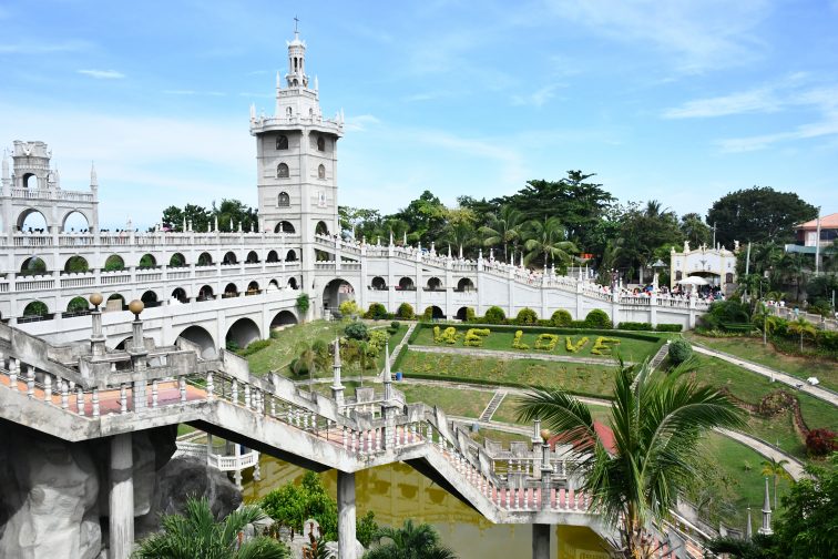 広大な敷地に佇むシマラ教会(Simala Church)。毎週日曜のミサには地元の人、観光客問わず大勢の人が訪れています。セブ島の観光ガイドやwebサイトで見かける写真に比べて実物ははるかに大きく、荘厳な雰囲気に圧倒されるはず。また、お願いごとをすると必ず叶うラッキースポットとしても有名な教会なんです。
