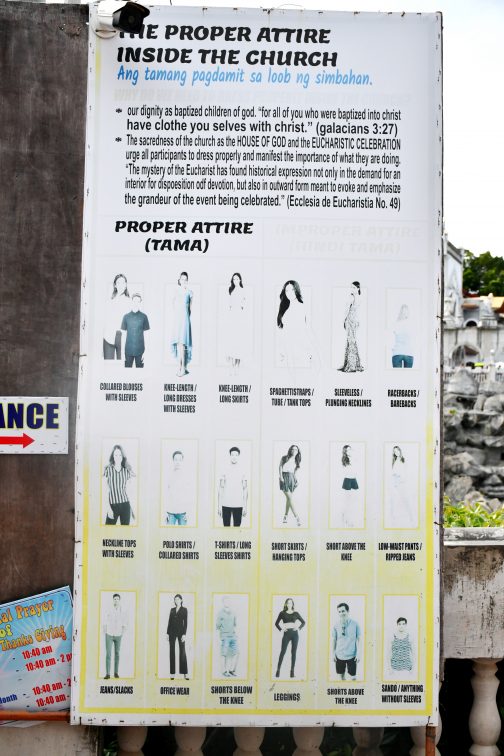 シマラ教会に限らず、お御堂は神聖な場所なので基本的には「肌の露出が多い服装」は禁止されています。タンクトップや、ひざ丈より短いズボン/スカートでは入場不可。トップスについては、羽織りを着て肩が見えない服装であれば大丈夫です。ちなみに短パンで来ていた方でバスタオルを巻いて入場していたゲストもいました。
