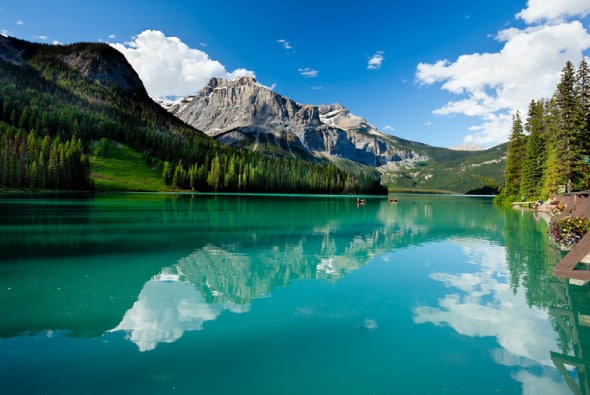 期待をはるかに超える美しさは、カナディアンロッキー観光で必ず立寄るべきスポットよ!湖畔に生い茂るマツの香りを楽しみながら贅沢なハイキングなんかもいんじゃなぁい!?