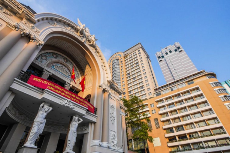 「カラベル ホテル」はホーチミン1区、市民劇場の向かいに位置しています。高級ブランドショップからベトナム雑貨のお店までバラエティー豊かな店舗が立ち並ぶドンコイ通りまでも歩いてすぐの距離にあるため、観光やショッピングの拠点にピッタリです。