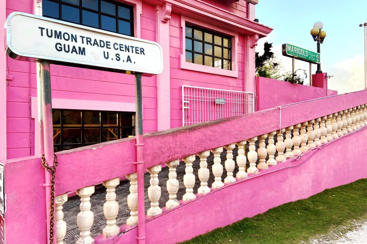 グアムのインスタスポットが注目されたきっかけになったのが、こちらの「タモントレードセンター(Tumon Trade Center)“通称ピンクの壁”」。鮮やかなピンク色のビルが目印です。タモンのホテルロード沿いにある、グランドプラザホテル向かいにある交番の、左側の道フジタロードを進むと見えてきます。