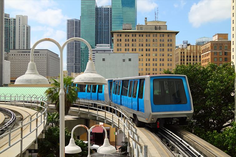 メトロムーバー(Metro Mover)はダウンタウンとブリッケルを走る無料の交通システムです。日本のゆりかもめに似た、モノレールのような無人走行の乗り物です。基本的に3分間隔で運行しているので、少ない待ち時間で効率よく移動できます。