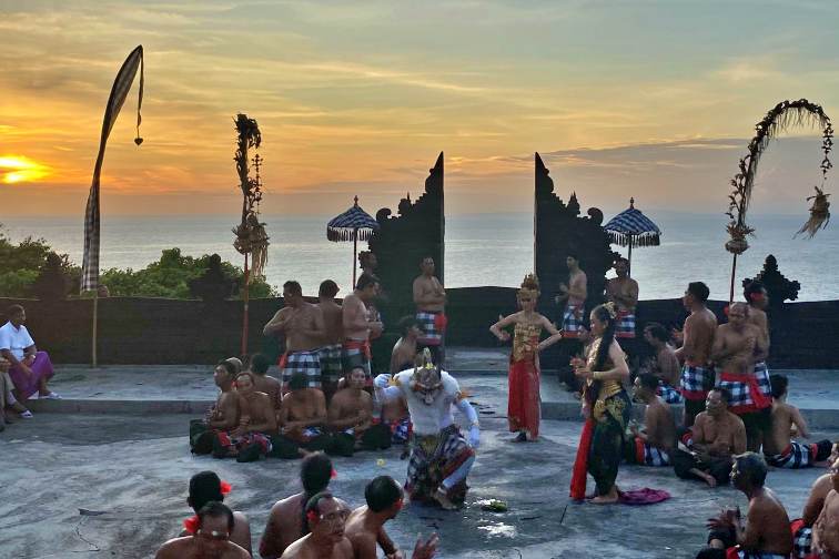もちろん夕日を眺めるだけでも感動するのですが、当社のツアーでは、そんな美しい夕日を背景に、伝統舞踊ケチャックダンスを鑑賞できます!