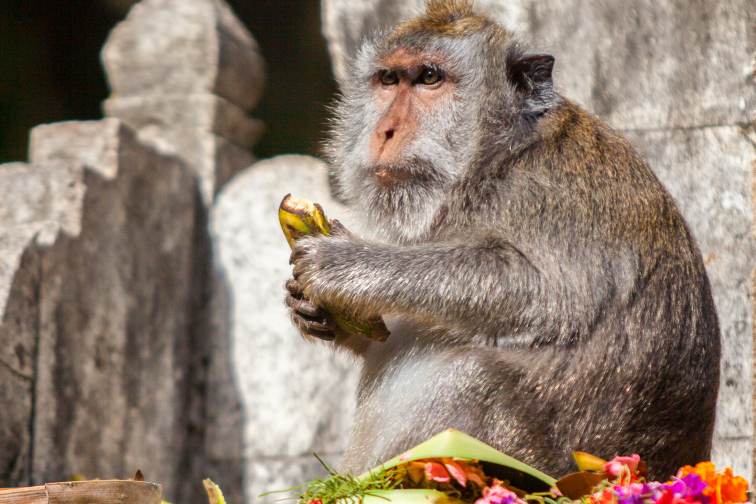 ウルワツ寺院周辺には野生のサルが多く住み着いており、お寺の敷地内にもよく姿を現します。観光客の眼鏡や帽子、アクセサリーなどを取ってしまう、やんちゃなサルも結構いるんですよ。ウルワツ寺院に行く際、装飾品はできるだけ身に着けないようにしましょう。