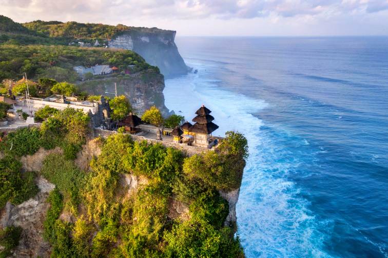 バリ島には1万以上もあると言われているお寺。お寺巡りは、バリ島旅行の醍醐味ですよね。その中でも、高さ70mの断崖絶壁に建てられたウルワツ寺院は、真下に青々とした海が広がり、バリ島に来たら外せない観光スポットとなっています。