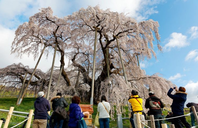 当時の三春藩はこの桜を「御用木」として柵をもうけて保護。三春藩士が江戸に出た際、その見事さを伝え、歌人の和歌によりその名が広がったと伝わります。 日本三大桜ということで、例年多くの人が訪れます。