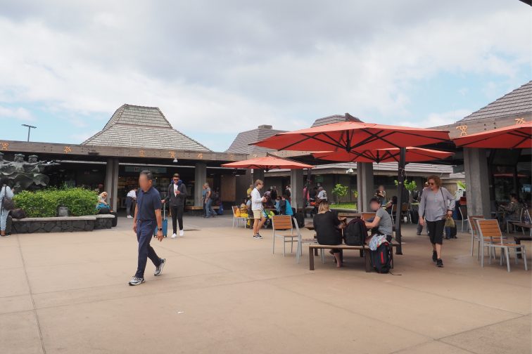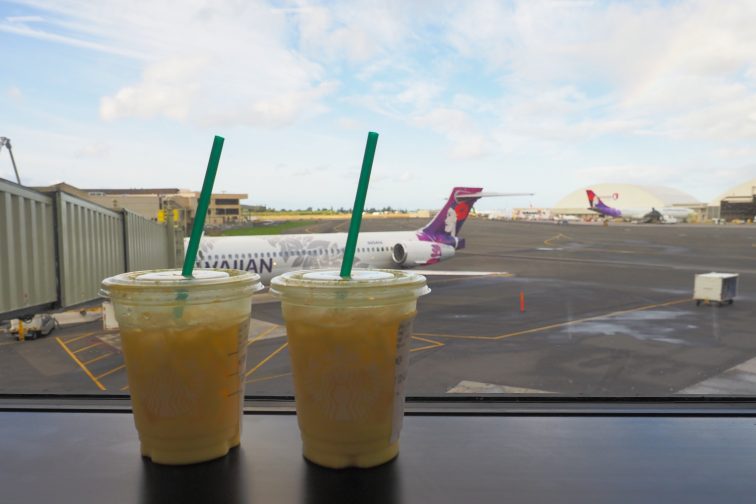 ここまで来ればもう大丈夫!あとは国内線の搭乗を待つのみです。指定ゲート近くで窓の外を眺めたり、ハワイ島の情報をチェックするなどしてゆったり過ごしましょう。今回利用するゲートBには、ホットドッグなどの軽食を扱う小さなショップが3店舗と自動販売機があるので、コーヒーでも飲んでホッと一息ついてもいいですね(2020年7月現在)。