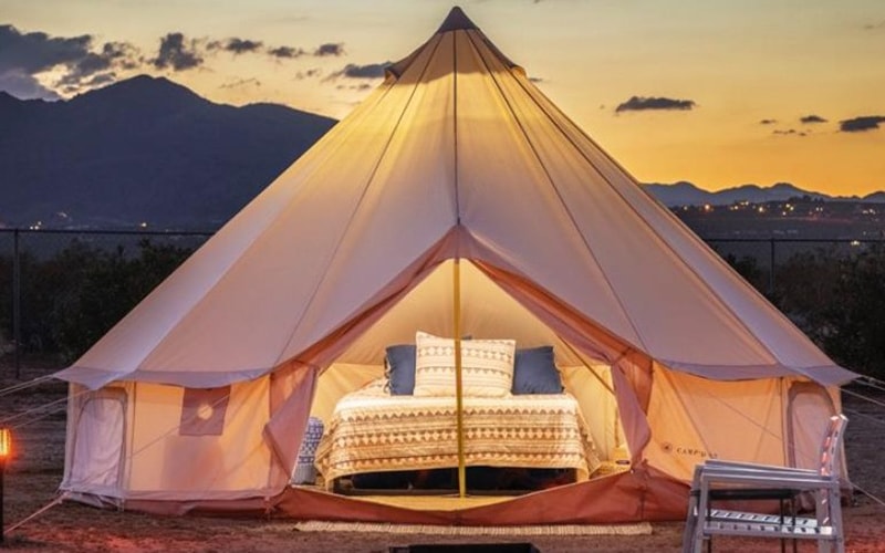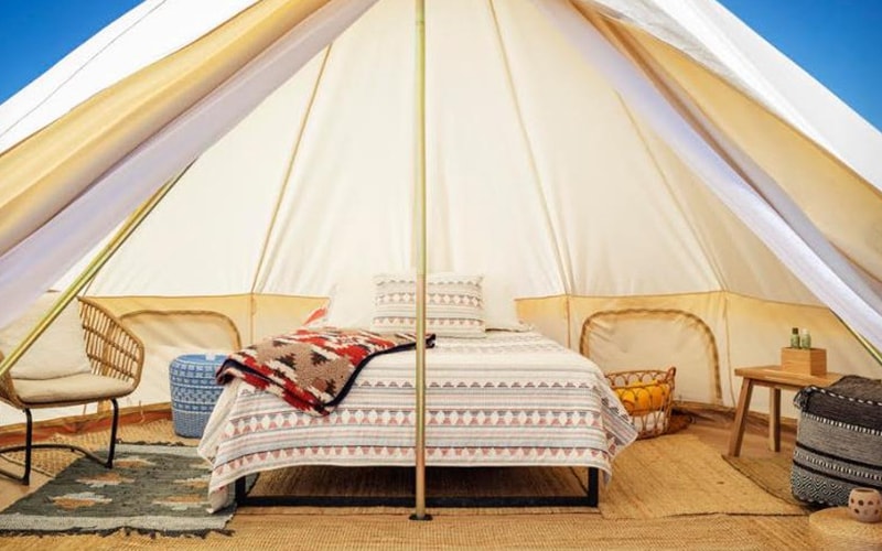 ご利用いただくグランピング施設は、ジョシュア・ツリー国立公園の玄関口にある「キャッスルハウス」のテント型施設となります。テントというナチュラルな佇まいのなかに、センスのよいインテリアやファブリックが配置され、オシャレな空間に気分もあがります!