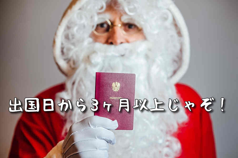 フィンランドを含むシェンゲン協定加盟国を出国する予定日から3ヵ月以上の有効残存期間が必要。
