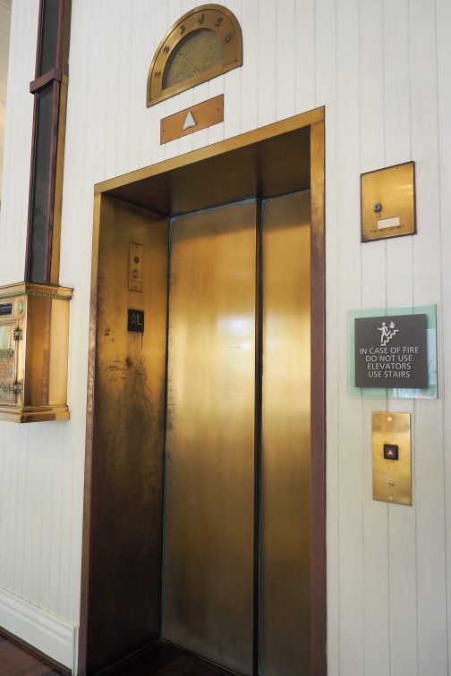 少しくすんだゴールド、階数表示の指針に年代を感じますね