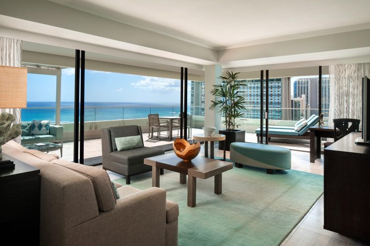 モアナサーフライダーにはペントハウスが10室ありますが、「ペントハウス・オーシャンフロント」はその名の通り青い海の絶景が堪能できる特別なスイートルーム。