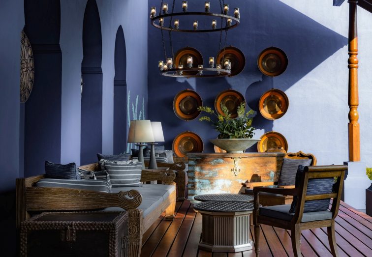 差し色の青が目を引くアジアンテイストのインテリア、大理石を使ったバスルームはシンプルながら高級感あふれる空間です。