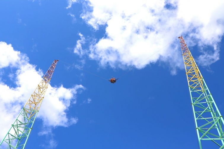 海抜60mの高さまで一気にポーンと放りだされて、空中でもぐるぐる回転する、スリル満点のアクティビティ。極度の高所恐怖症じゃなければ楽しめると思います。というのも、飛ぶときの勢いが凄くて、上も下もわからなくなるんです(笑)。