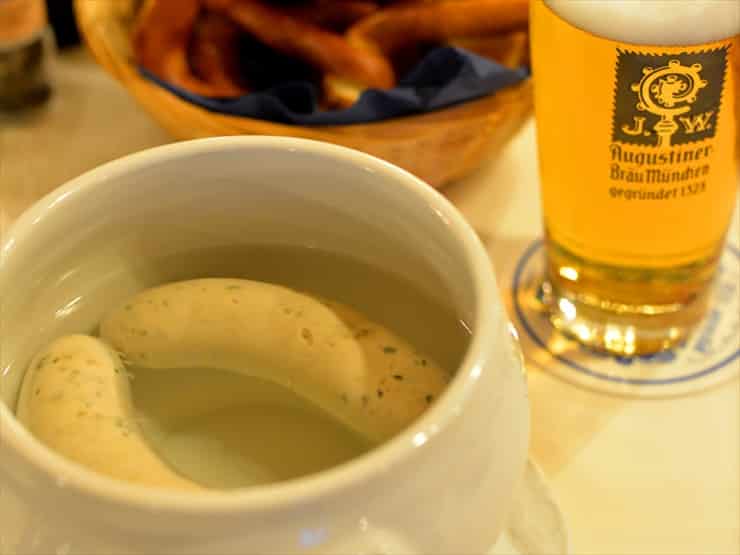 ここの白ソーセージはふわっふわでファン多し。正午の鐘が鳴るまでの名物料理です。