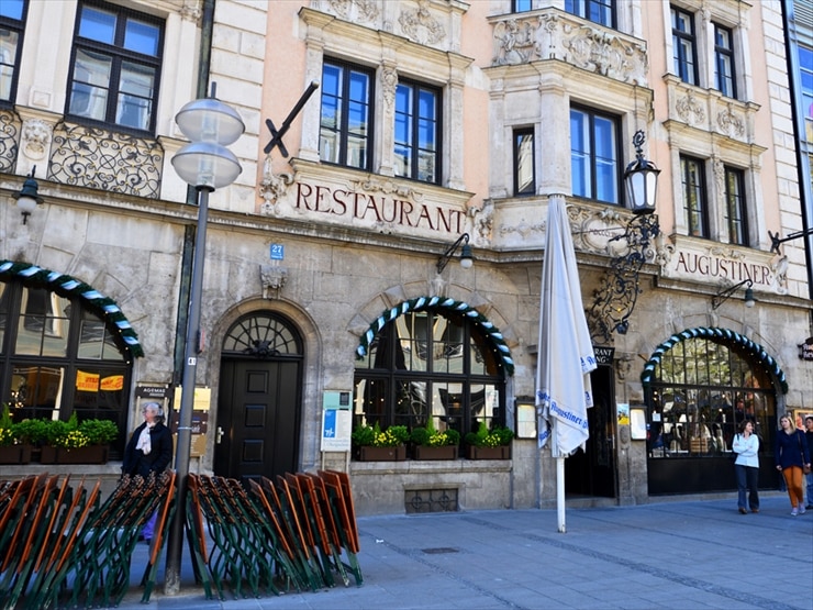 ミュンヘンの地元っ子に圧倒的人気を誇るビール醸造所直営レストランが「アウグスティナー・グロースガストシュテーテン(Augstiner Großgaststätten)」。アウグスティーナー醸造所はミュンヘンで最も古いビール醸造所。1294年に造られたアウグスティーナー修道院で1328年にビール醸造を始めたことが、このビールの誕生につながります。