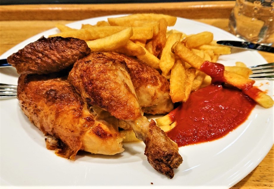 がっつりチキンのグリルをいただきました。チキンは薄めの塩味で、素材本来の味が楽しめてとても美味しいのですが・・・かなりの量です。2人で一皿オーダーし、途中でギブアップしました。空腹の男性も満足できるはず。