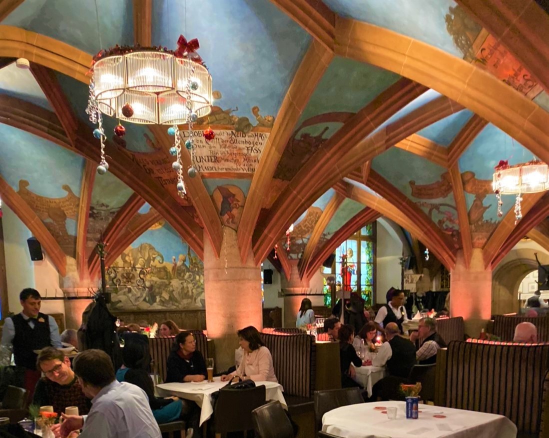 ミュンヘンのシンボル、ネオ・ゴシック調の新市庁舎地下にある創業145年近い老舗レストラン。日本にある市庁舎の食堂を想像して入ると裏切られてしまう、約10フロアにも分かれた美しい空間が広がっています。