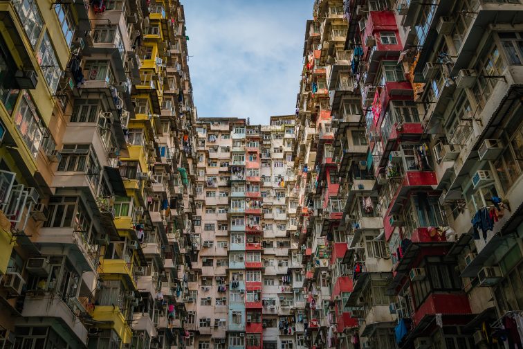 映画『トランスフォーマー/ロストエイジ』のロケ地として一躍有名になった香港島の鰂魚涌(クオーリーベイ)という街の住宅ビルです。