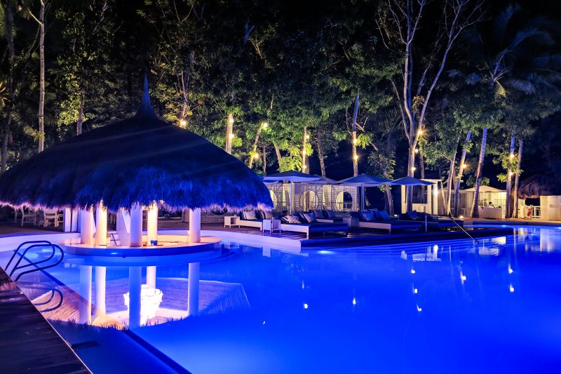 ホテル「パシフィック セブ リゾート」のナイトプールにて
