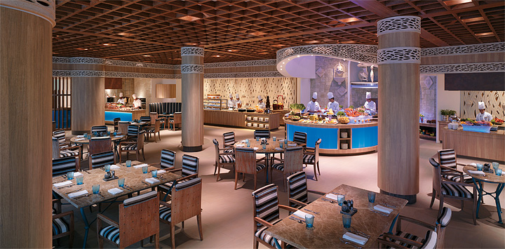 朝食会場のシルバーシェルカフェは、世界各国の料理が揃うビュッフェスタイルのレストランです。