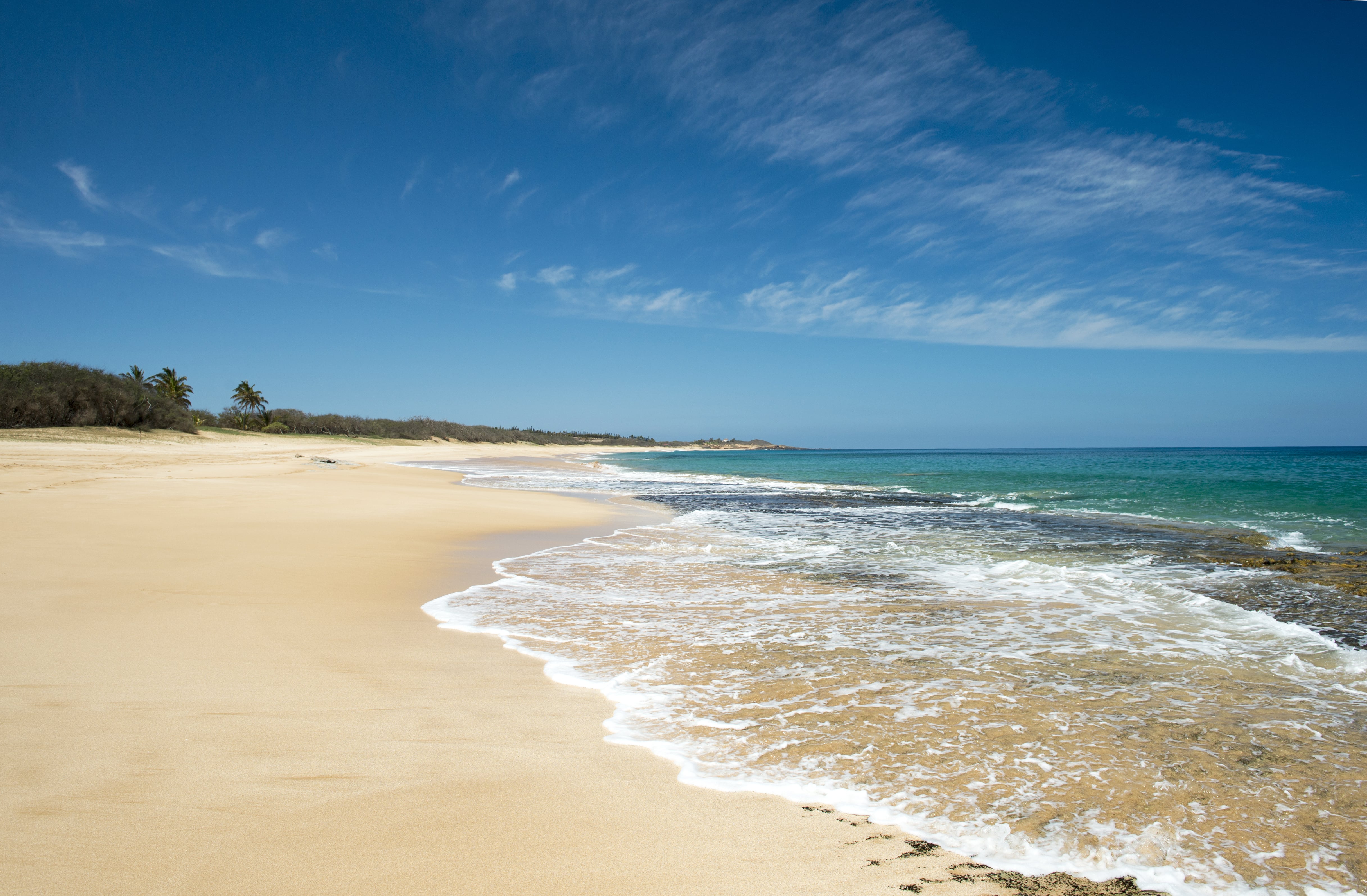 モロカイ島の西海岸にあり、比較的小規模で訪れる人も少ない美しいビーチとなっています。週末でも日光浴や水遊びを楽しむために地元の人が来る程度です。またサンゴ礁に囲まれている海は穏やかなので、のんびり時間を過ごしたいという方には最適な観光スポットとなっています。尚、ビーチ周辺はトゲが付いた木が多くある原生林となっているので、裸足やサンダルよりもスニーカーなどしっかりした靴を履いていくのが良いでしょう。