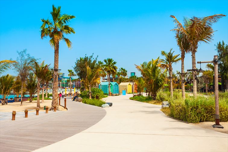 ラ・メールは2.5kmのビーチ沿いに多国籍のレストランや洋服店、公園やビーチなどが並んでいます。その合間には2つの入り江があり、カヤックやジェットスキーなどのウォータースポーツ(有料)を楽しむこともできます。ラ・メールは全体的に近代的で落ち着いた雰囲気ですが、ところどころに置かれたカラフルなオブジェや壁に描かれた個性的なアートはまさにインスタ映え!子ども向けのプレイエリアもあるので、家族みんなで楽しめるスポットです。食事するも良し、ビーチで遊ぶも良し、夕日が沈むころヤシの木に囲まれた遊歩道を散歩するだけも良し、砂漠や高層ビル群とは異なるドバイの一面を楽しんでみませんか。