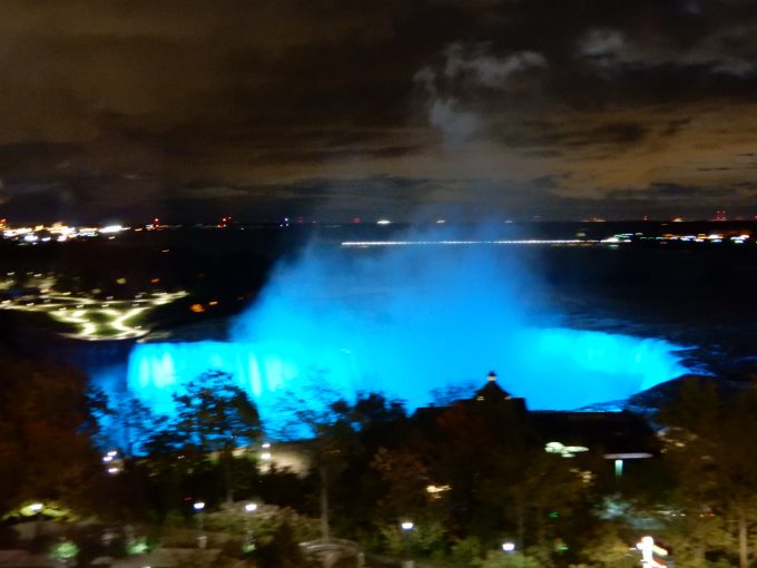 夜にはナイアガラの滝がライトアップされます