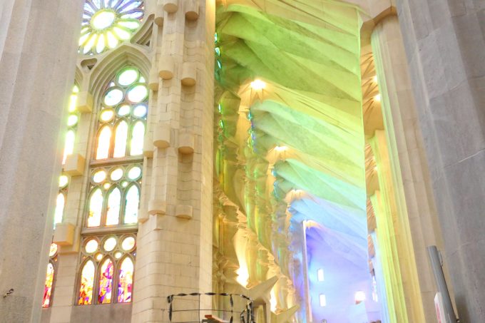翌日は朝からサグラダ・ファミリアをゆっくり観光。やっぱりサグラダ・ファミリアはすごいですね。彫刻の1つ1つに意味があってどこにカメラを向けても素敵な写真が撮れます。サグラダ・ファミリアは東が青いステンドグラス、西が赤いステンドグラスです。西日が差さないとステンドグラスの美しさがわかりません。なので午後がお勧めです。また、地下のガウディのお墓はショップ横の説明スペースからも見ることができます。