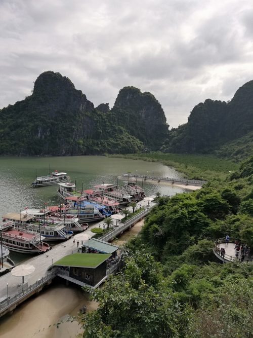 2日目はハロン湾クルーズへ行きました。お天気もよくて、晴れ渡った空とハロン湾を見て「やっと見られた~!」と嬉しい気持ちでいっぱいでした。船は私達の他には誰もいなくて貸切状態。穏やかなハロン湾をゆったり船で廻る、贅沢な時間が過ごせました。