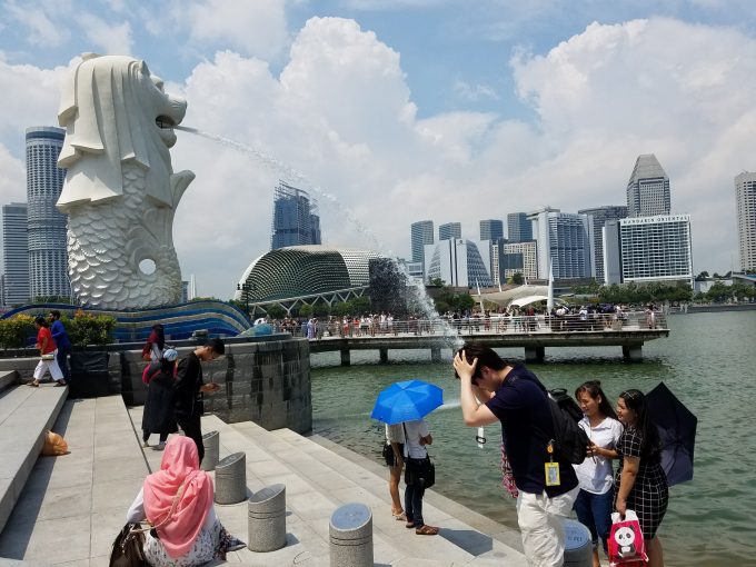 次の日から本格的に観光をはじめて、有名なところには全部行きました。まずはマーライオン公園。ここでマーライオンで取れる写真を撮れるだけ撮りました。口から水を出してみたり、手で受け止めてみたり。
