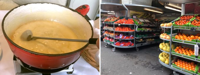 昼食は、スイスに来たら絶対に食べようと思っていた「チーズフォンデュ」のお店へ。これが少しイメージと違って、色々な食材をチーズにつけて楽しめると期待していましたが、小さなじゃがいもとパンのみの質素なかんじでした(笑)。しかもそれだけで約5000円!スイスの物価は本当にあなどれません!スイスに行かれる方はしっかり事前に調べて行くと良いと思います。