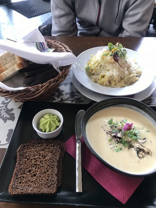 タリンでは旧市街のホテルに宿泊。タリンは建物の配色センスが抜群で、どこを見ても街並みが可愛い!見ているだけでテンションが上がります。本当におとぎの国みたいでした。お土産屋さんもいっぱい!普段はあまり入らないのですが、すべてのお店が可愛い過ぎて1つ1つ中を見ました。中心地にある「VANA TALLINN(ヴァナ・タリン)」でランチ。きのこのスープと小海老パスタを食べました。