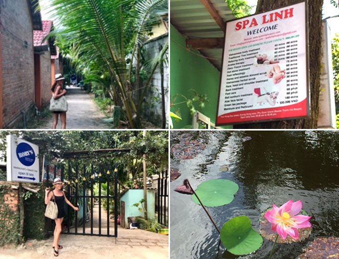 観光最終日は、朝からビーチをランニングして、ジムも活用しました。マッサージに行きたかったため、ホテルの人に相談して、街中の「SPA LINH」に行くことに。バックパッカーの方がたくさんいるバンガローなどの多いエリアにあり、ローカルな雰囲気漂うスパでした。とっても良かったですよ。この辺りの周辺散策も楽しかったです。道を曲がるとビーチに突き当たったりして。フーコック島は自然豊かで本当に癒しの島だなと感じました。