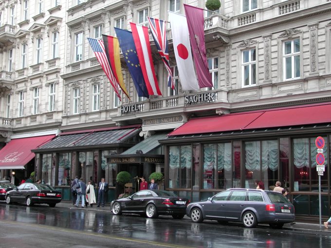 締めくくりは、シュテファン教会からオペラ座に戻りながら、オペラ座の裏手にあるホテルザッハーのカフェに行きました。かつて妻や娘と一緒に来た時には入ったのですが、歳を重ねた男が一人で入るのには、ためらいを感じました。代わりに、家族や孫たちのために、ザッハトルテをお土産に買い求めました。かつて店内にあふれるほどいた日本人客は私一人。ホテルザッハーの玄関口にあった日の丸の国旗は、今回は見当たりませんでした。何か寂しい感じでした。