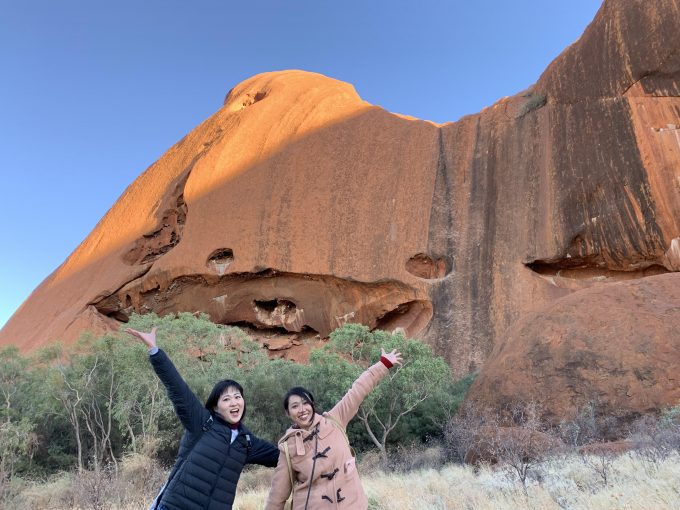 翌日は朝からサンライズツアーへ。こちらもベストビュースポットで朝日を見ることができました。高尚で本当に美しい。言葉にならないくらい、感動しました。恥ずかしながら、私はエアーズロックがこんなに大自然の中にあるとは知らなかったんです。普段もそれほど自然観賞する方でもないですし。でも今回エアーズロックに来て、大自然の素晴らしさというか、神聖さに感動しましました。圧巻ですね!パワーをもらえました!