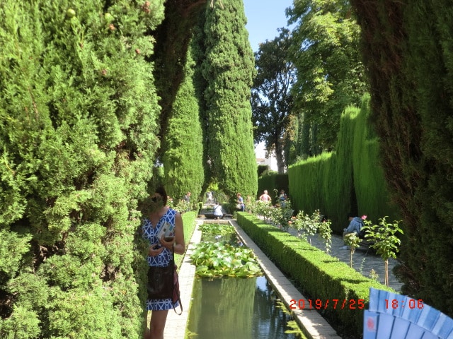 6日目はアルハンブラ宮殿 に。イスラム教徒によってグラナダ王国が建国されたことによって建設さされたアルハンブラ宮殿。中に入ると緑豊かな庭園は広がっています。シックな外観からは想像がつきません!まるで楽園のよう。中の宮殿も美しいアラブ様式で見応えがあります。スペインでこんなに美しいイスラム芸術が見られるなんて。今回の旅行で一番感動した場所となりました。