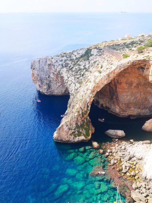 それからマルタ島の青の洞門ブルーグロットへ。波で自然に削らた岩に青い海。光が当たると海が透き通って、まるで宝石のよう。ボートツアーに参加して透き通った美しい海を堪能しました。
