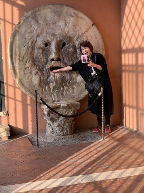 昼食後スペイン広場 からトレビの泉まで移動。人の多さにびっくりしながらも、ジェラートを食べながら歩きました。まだ真実の口があるサンタ・マリア・イン・コスメディン教会へ間に合うのでは?と思い歩いて向かうことに。閉館50分前になんとか到着!長い列ができていましたが、私たちも並び、真実の口の前で、母の写真と共に無事撮影することができました。こうして母と来られてよかったです(涙)。 真実の口からコロッセオ駅まで、結構な距離がありましたが歴史的な建物がたくさんあるので、楽しく歩けました。
