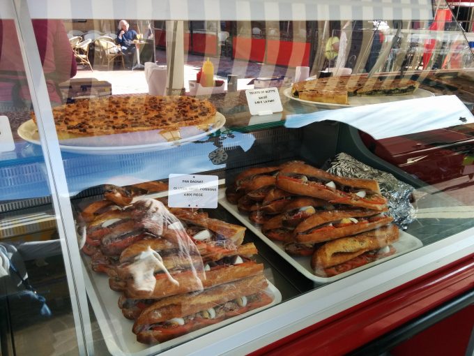 ニース最終日は朝一でマルシェに行きました。賑わってましたね。地元の人がお野菜やお魚とか買いにきていましたし、絵が描かれた食器、ハーブが混ざったお塩、ハーブティなどいろいろあってすごい楽しかったですね。あとは南フランス名物のソッカというポテトとひよこ豆のクレープみたいなものを食べました。他にも魚介や野菜のサンドイッチ、タコのマリネ、お野菜のオーブン焼きなど、その場で食べられたので出来立てのおいしさを堪能できました。そのあと展望台から海を見たり、海沿いを散歩してから、パリへ向かうべく空港へ行きました。