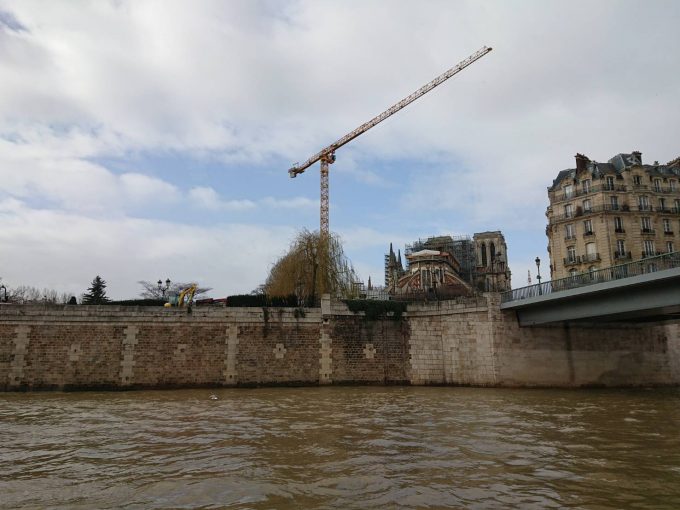エッフェル塔の下にセーヌ川遊覧船があり、ノートルダム大聖堂まで行きました。帰りはまた、シャンゼリゼ通り中央まで地下鉄で移動して、散歩しながらホテルに帰りました。
