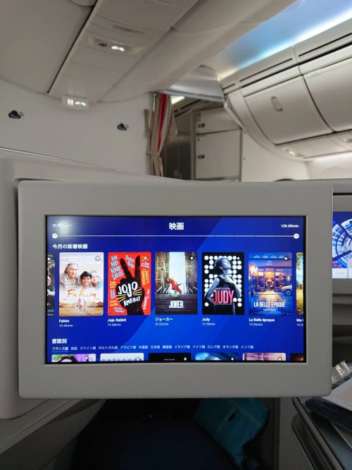 ビジネスクラスはフルフラットシートなので、ヨーロッパなど遠い方面に行くときは疲れなくていいですね。映画のレパートリーも豊富で、快適に過ごせました。