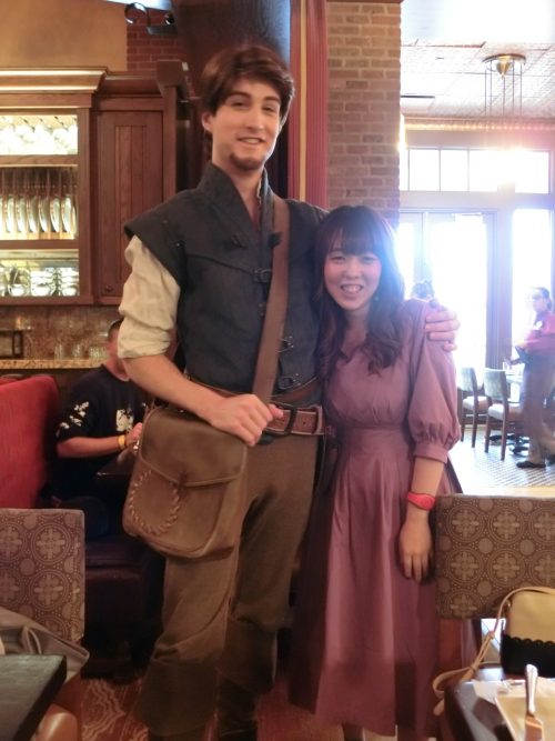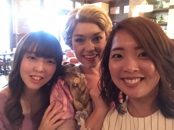 4日目は、まずボードウォーク内にある「トラットリア・アル・フォルノ」で朝食をいただきました。ラプンツェル・フリン・アリエル・エリック王子に会えるキャラクターダイニングです!音楽「アンダーザシー」がかかって、キャラクターが登場!仮装した子どもたちも一緒に踊りながらテーブルの周りをねり歩いていてとっても可愛かった。一つ一つのテーブルをまわってきてくれて写真も撮れました。王子様との会話にドキドキでした。