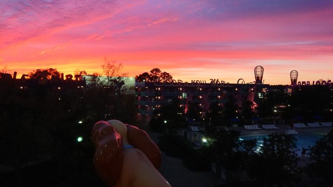 深夜に空港到着。バスでホテルに移動しました。今回の滞在先は「ディズニー・ポップ・センチュリー・リゾート」。直営ホテルに泊まるとファストパスが早く取れるということもあり、パークチケットの連動などについてもトラベルスタンダードの担当者の方に聞くと、メールですぐ返信をいただけたのが印象的でした!全日直営ホテルを予約していただいたので、パーク間の移動もとっても楽でした。ホテルはアメリカのモーテルみたいな感じでした。歯ブラシはありませんでした。シャワーは水量少なめでしたがバスタブはありました。パークまで直接モノレールで行けたので便利でした。ディズニー周辺は物価も高く、ホテルの周辺にはレストランなどはないため、日本からもっていったカップラーメンが重宝しました!